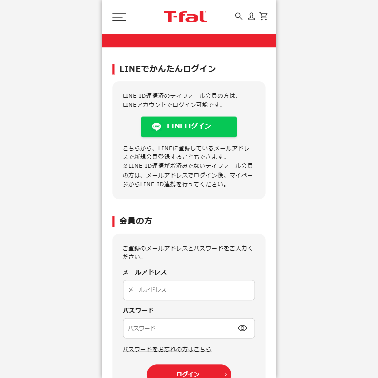 ID・パスワード入力が不要で、会員サービスをよりスムーズにご利用いただけます。お気に入り製品やレシピの確認、オンラインストアでのお買い物も快適!