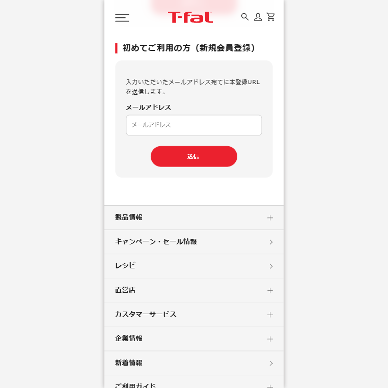 新規会員登録画面で