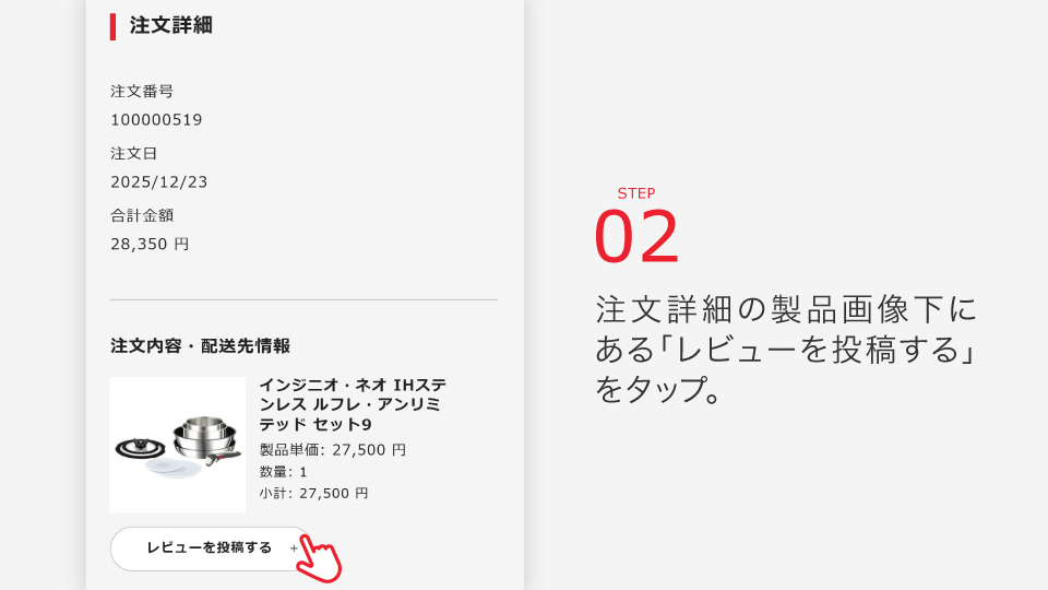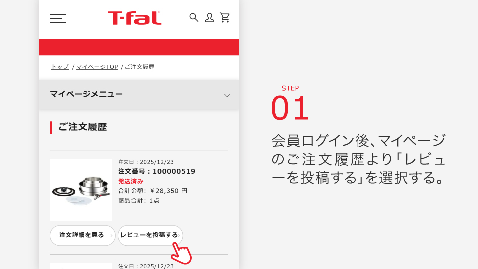 ・過去にご購入いただいた製品も対象となりますが、製品レビュー投稿済みの製品にもう一度投稿することはできません。