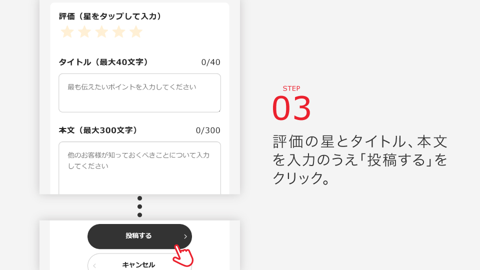 ・ご投稿いただいたレビューは、必ずしも掲載をお約束するものではありません。