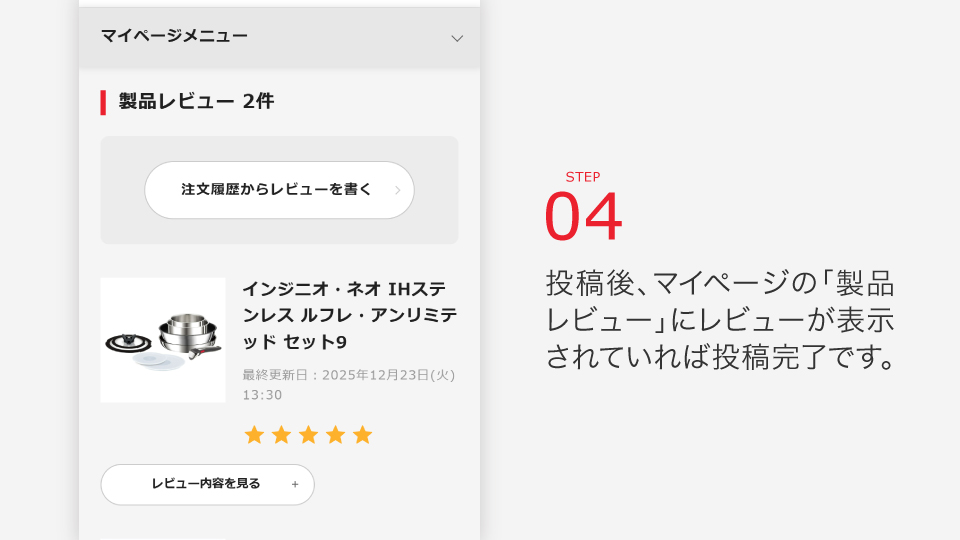 ・製品レビューの投稿はご購入いただいた1製品に対して1回のみです。
