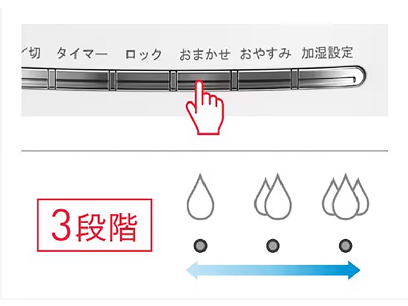 【マニュアルモード】お好みに合わせて、加湿量を3段階でマニュアル設定することも可能。