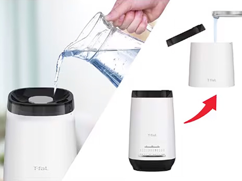 水を追加したいときは、運転中でもそのまま上から給水が可能。たっぷり水を入れたいときは、タンクを取り外して水道から給水が可能。