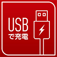 付属の充電用USBケーブルを使って充電・給電。USB充電で、海外旅行にも使える