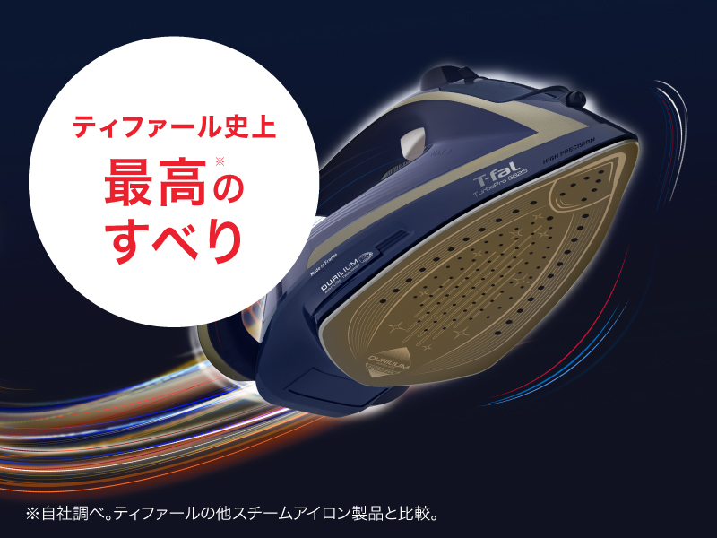 | 特長 | ティファールNo.1大量スチームと最高のすべりで、プロ級の仕上がり | 圧倒的スチーム量とティファールNO.1のすべりで、本格的な仕上がり | ティファールNo.1のすべりとパワフルスチームで、満足な仕上がりと使い心地 | ジェットスチームですばやく簡単にアイロンがけ |