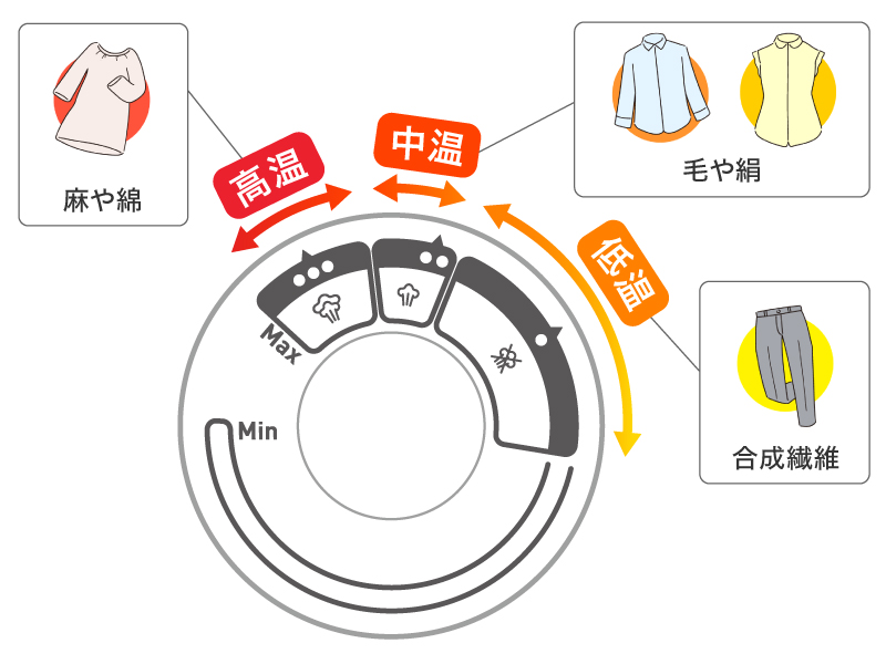 素材に合わせて選べる3段階の温度設定。最適な温度でやさしくお手入れができる。