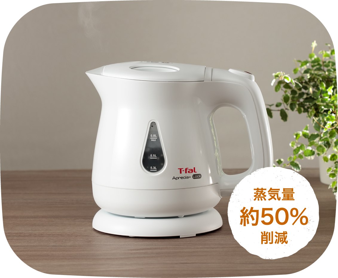 従来品 アプレシア コントロール(KO63*)と比較し、蒸気量を約50%まで削減した安心設計。蒸気によるやけどのリスクを抑えます。*2