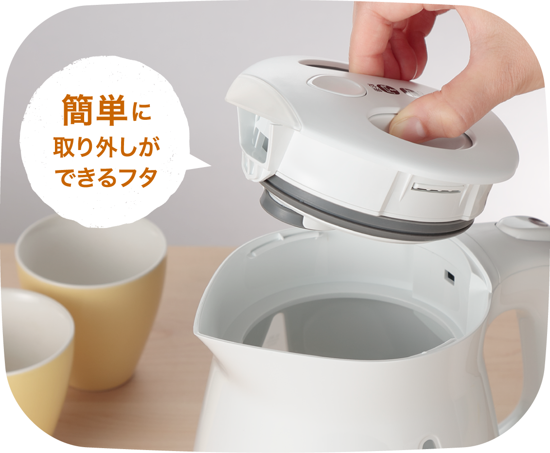 給水しやすく、内側のお手入れもしやすい取り外しできるフタ。