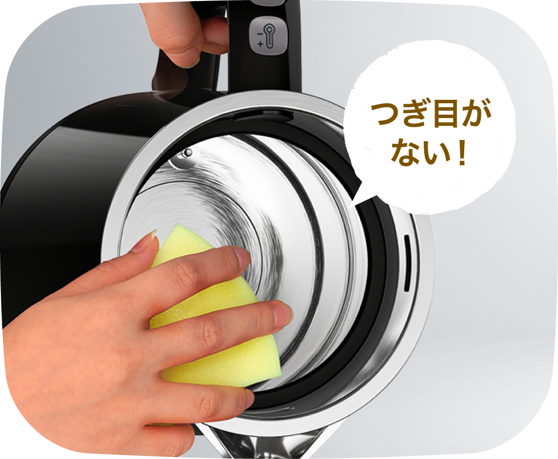 つぎ目がないステンレス製の内部構造なので、洗いやすく手軽にお手入れができます。