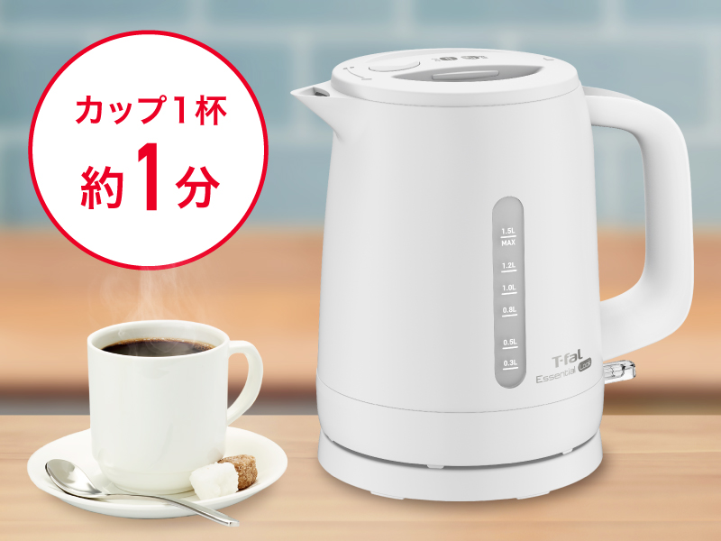 *水温・室温23度の条件で、記載量が沸騰するまでの時間。沸騰後、しばらくすると自動電源オフ機能が働きます。カップ1杯相当(約140mL)から沸かせますが、水量目盛の300mL以上でのご使用をおすすめします。