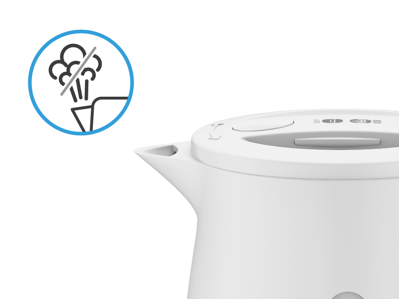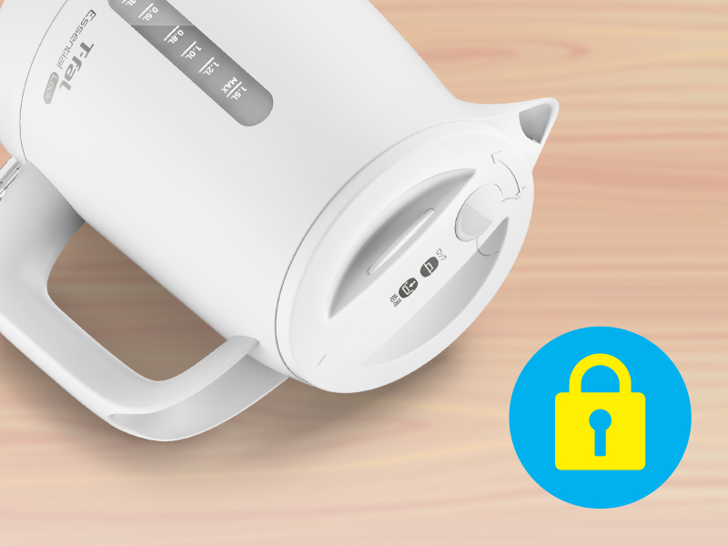 倒れてもこぼれにくいロック機能付きで、やけどなどの危険性を軽減。