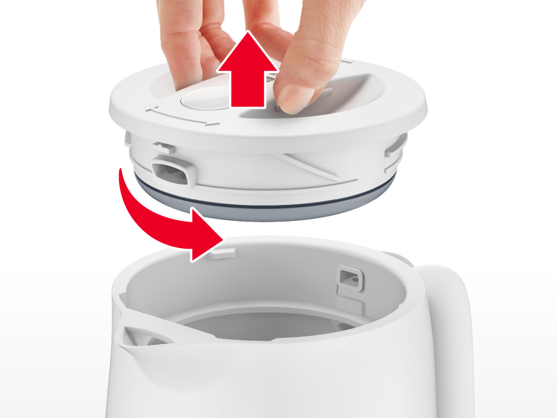回して持ち上げるだけで取り外せるフタ。給水しやすく、内側のお手入れもしやすい。