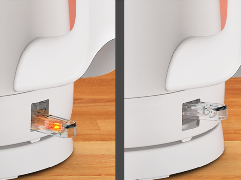 湯沸かし中はハンドル下のスイッチにあるパイロットランプが点灯。