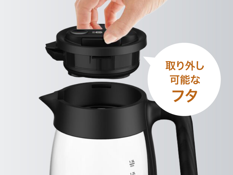 大きな開口部だから電気ケトル内側のお掃除がしやすく、いつでも清潔に保てます。