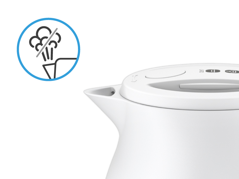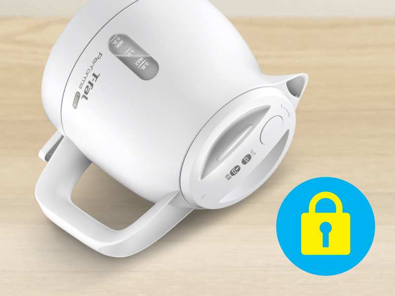 倒れてもこぼれにくいロック機能付きで、やけどなどの危険性を軽減。