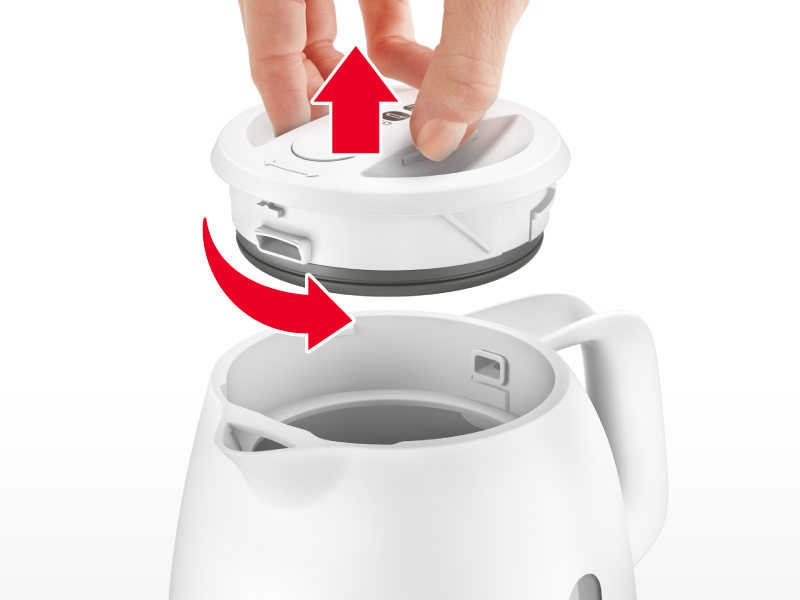 回して持ち上げるだけで取り外せるフタ。給水しやすく、内側のお手入れもしやすい。