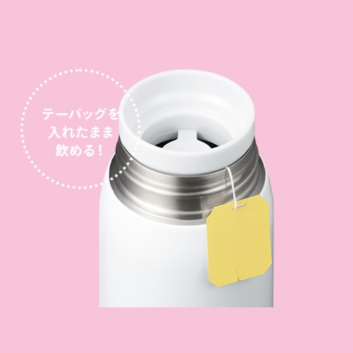 飲み口は、ティーバッグをボトルに入れたまま飲める、便利なティーインフューザーが付いています。