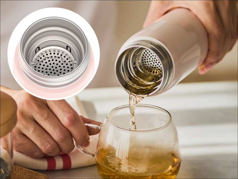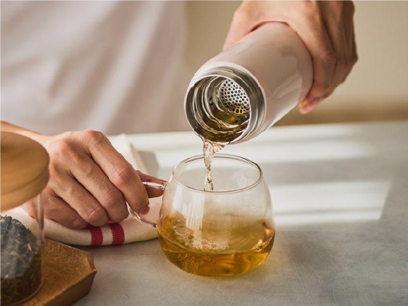 ボトルに茶葉を直接入れて、茶葉を開かせながらお茶を楽しめる。