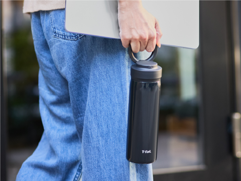 ふたと一体型のコンパクトな持ち手が付いているから、ちょっとした持ち歩きに便利。オフィスやお出かけなどに気軽に持ち運べる。