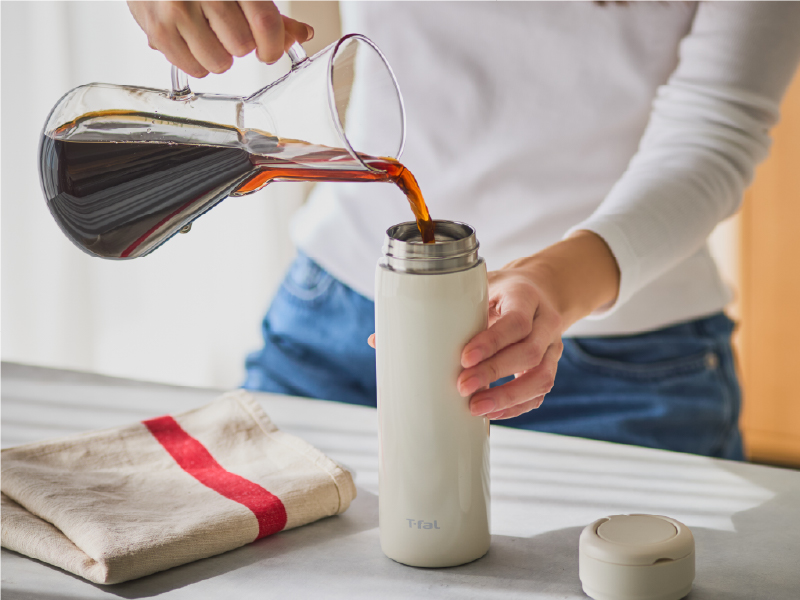 ステンレスの二重構造で、温かいものも冷たいものも、どちらもOK。