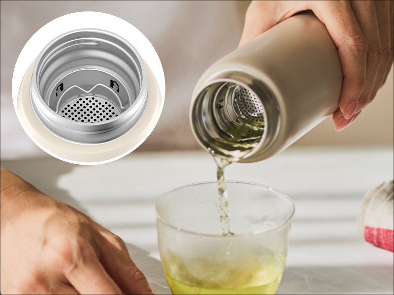 ボトルに茶葉を直接入れて、茶葉を開かせながらお茶を楽しめる。