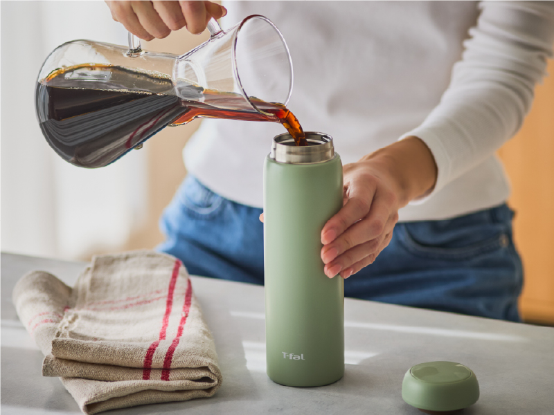 カフェのカップ感覚で、いれたてのおいしさそのままに。ストロー、直飲み、ふたを外して広口で直飲みの3WAYタンブラーでお好みの飲み物を楽しめます。 | |