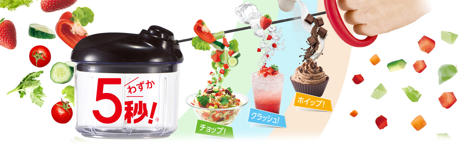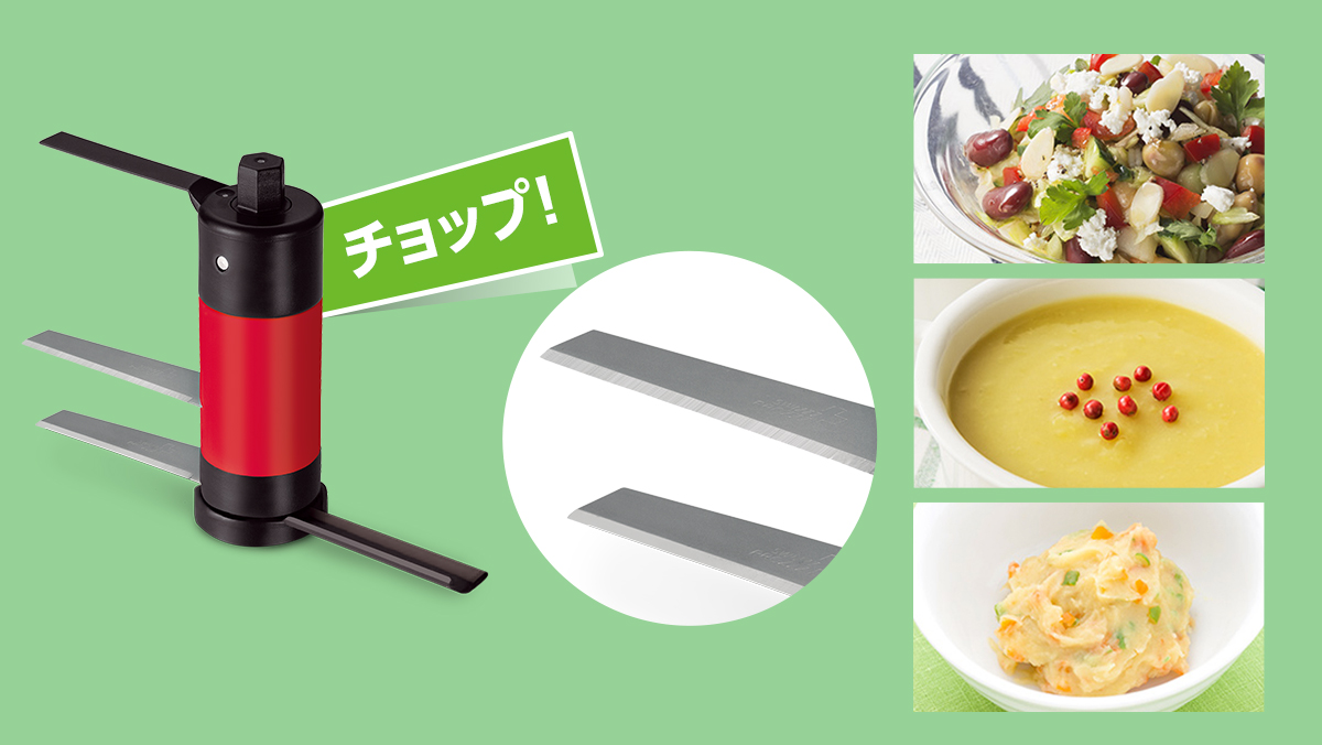 わずか5秒*!様々な食材の下ごしらえに!独自のダブルツイストブレードでおいしさ変わる!