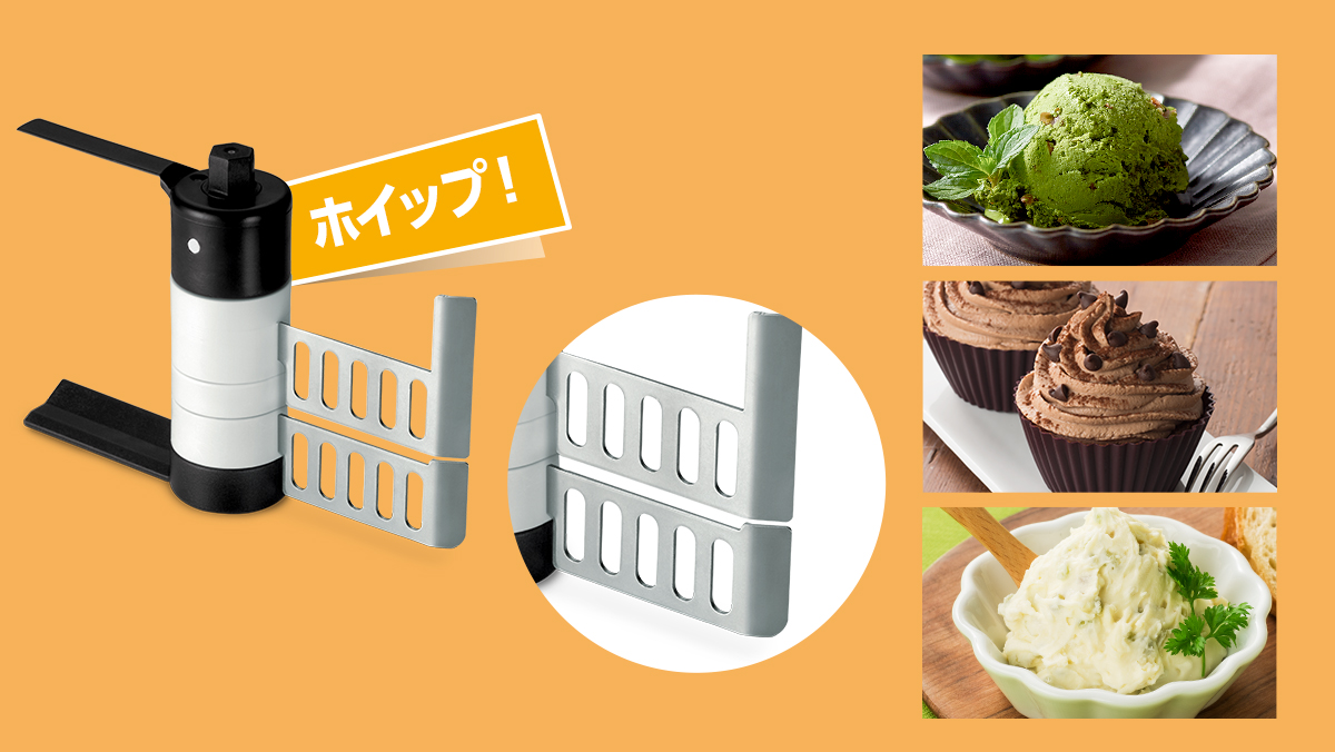混ぜたり泡立てに最適。穴や刃の形は、空気を取り込むのに理想的な形状。