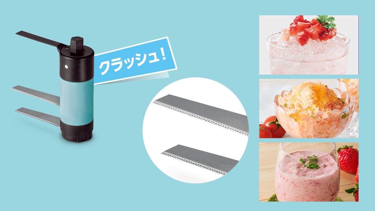 氷や凍った食材のカットができる、のこぎり型のパワフルな刃。