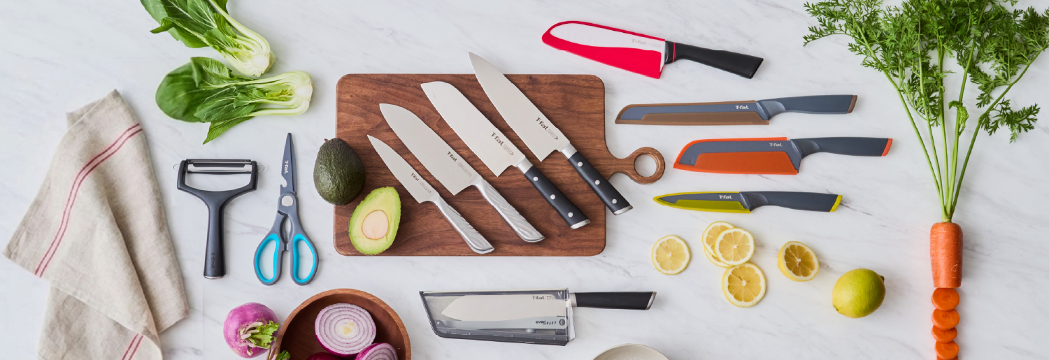 「三徳」とは、肉・魚・野菜の三つの用途に使うことができることを意味しており、三徳ナイフは様々な食材のカットに適した、日本で一般的に使われる万能包丁です。他のナイフは特定の用途に特化しています。例えば、ペティナイフはフルーツや小型の野菜のカットなど細かい作業に適し、シェフナイフは肉や魚など大きな食材のカットに適しています。他にも様々な種類のナイフがあります。