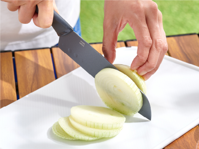 ナイフを出し入れするだけで自動で研げるから、切れ味いつでもシャープ。耐久性の高いドイツ製ステンレス | チタン強化コーティングでお手入れカンタン、切れ味長続き。食材が付きにくい | 硬質で薄刃のセラミックナイフとピラー。研がずに長く使え、錆びない。高いカット力で、鋭い切れ味続く | 高いカッティングパフォーマンスを持った、モダンで美しい形状のステンレスナイフ |