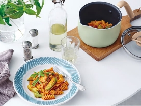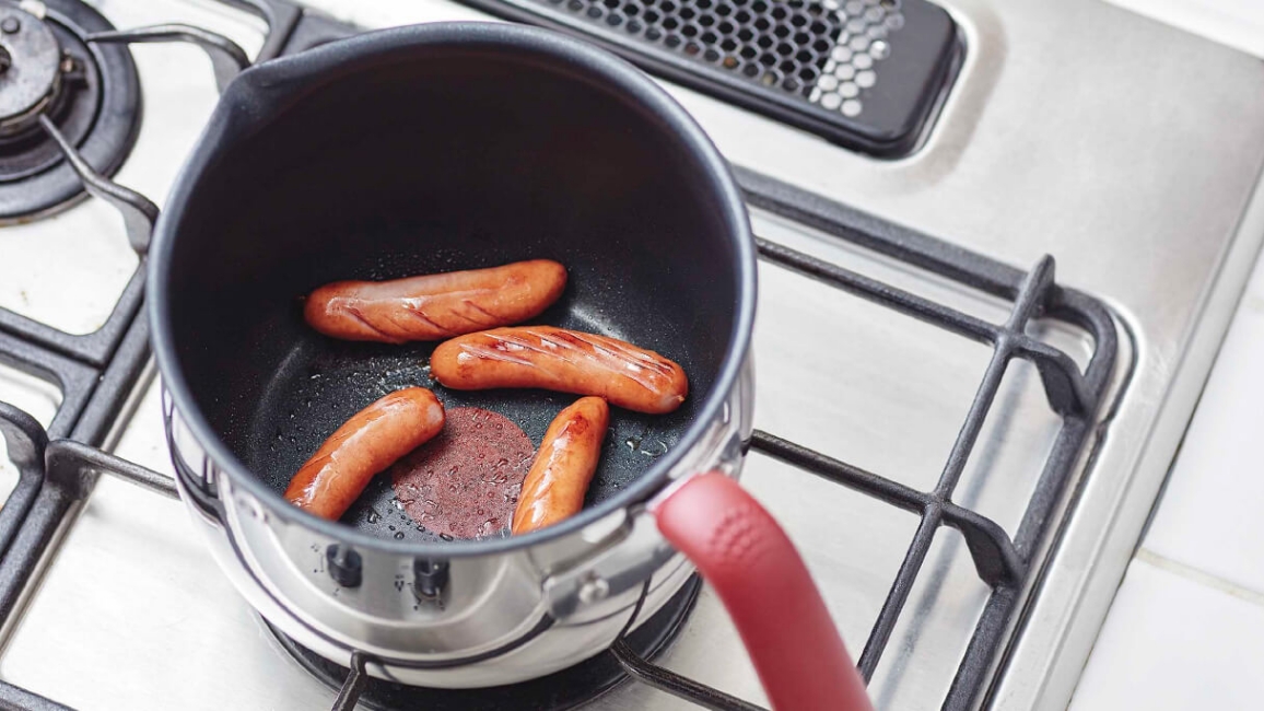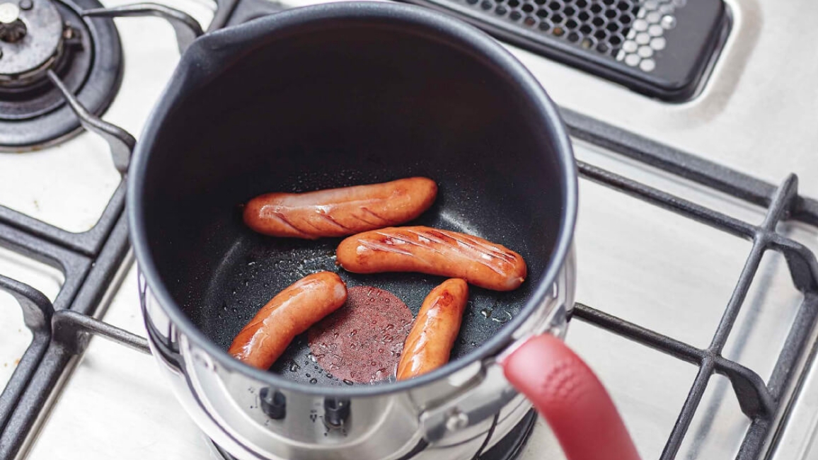 限られた時間の中で慌ただしく朝食の準備…。そんなときにもコンパクトなマルチポットが大活躍。小回りがきいて使いやすいので、ソーセージを焼くのもパパッと簡単にでき、朝食がすぐに完成!独自のコーティングで汚れがするりと落ち、後片付けもラクラクです。