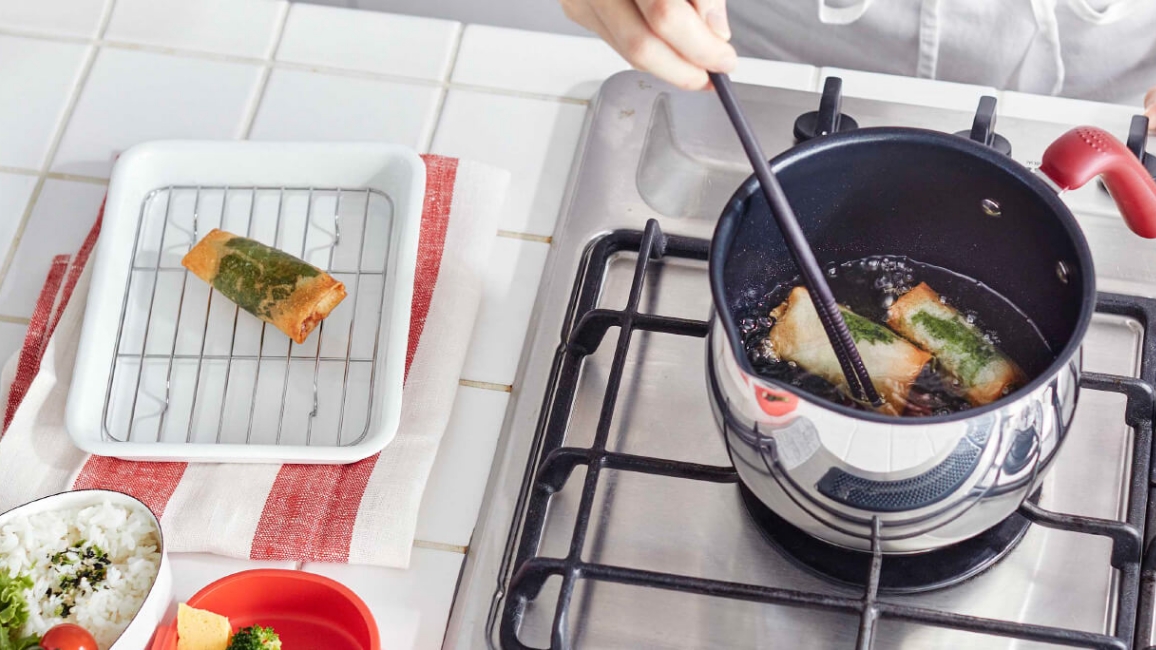 お弁当作りは色々なおかずを用意するのにひと苦労。そんなときにはマルチポットひとつでレパートリーが広がります。例えば、唐揚げを揚げるのも少量の油で簡単にでき、コンパクト設計だから効率的です。深さがあるので油跳ねが少なく、コンロを汚しにくいのでストレスフリーです。