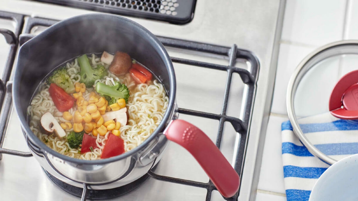 作り置きのスープを温めたり、インスタントラーメンを作ったり。マルチポットは小腹が空いたときの軽食作りにもちょうどいいサイズ。軽量で持ちやすく、スープも注ぎやすいから、盛り付けまで簡単に完成します。
