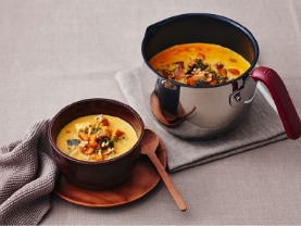 リモートワークの合間のおうちランチは、手軽にパパッと済ませたいもの。マルチポットは少ない容量の1人分調理にもちょうどいいサイズ。片付けもラクラクなワンポット料理がオススメです。