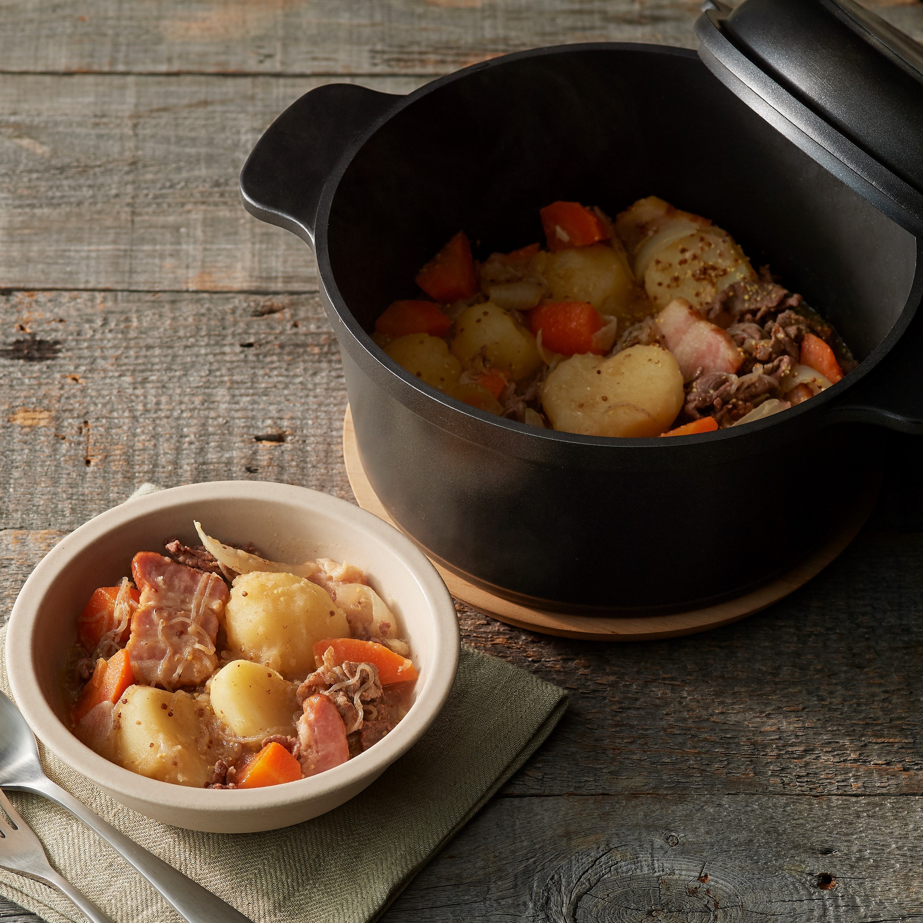重ねて収納できるから、キッチンがすっきり!熱々のままテーブルにも、オーブンや冷蔵庫にもそのまま入れられて、使い方自由自在。