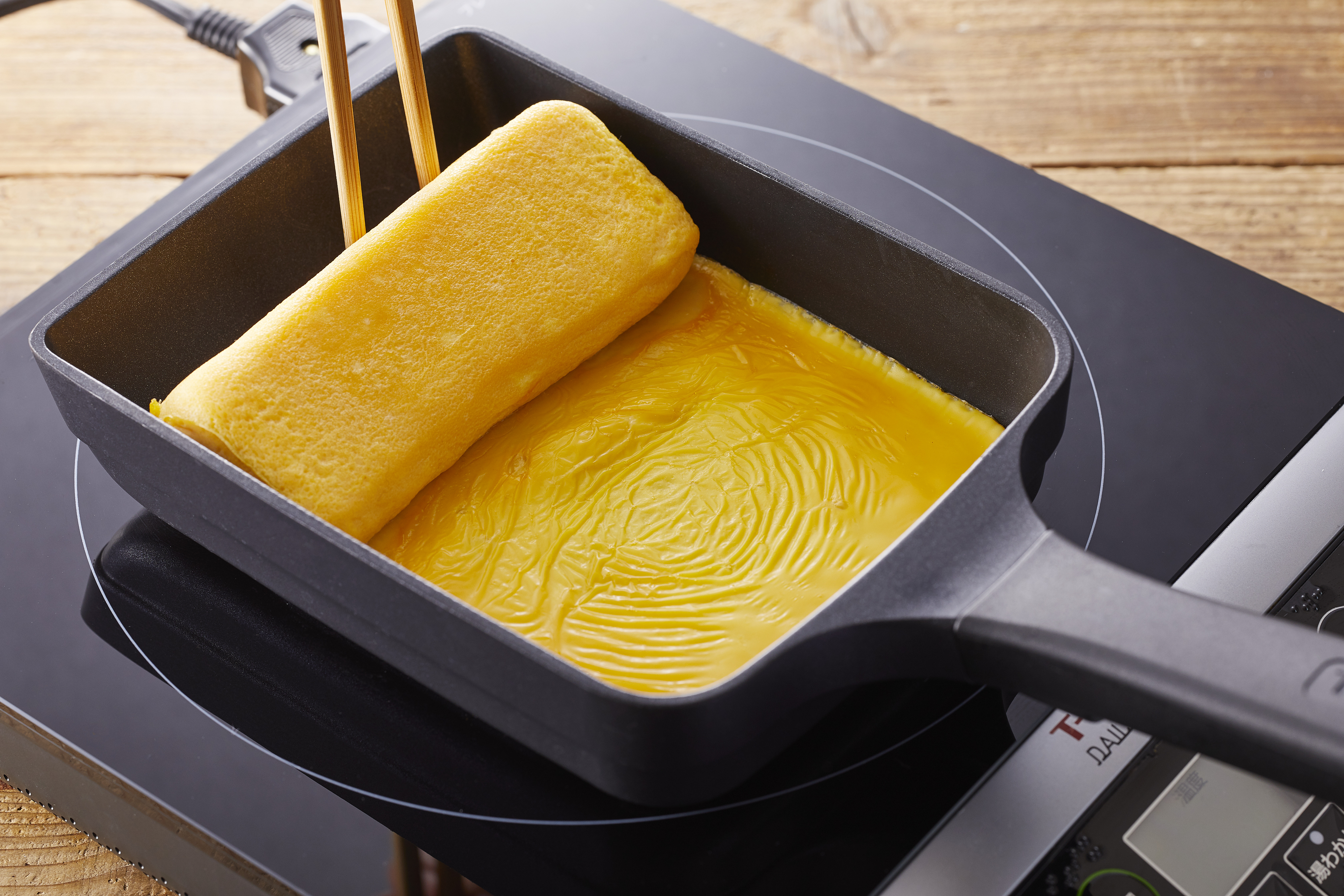 冷たい溶き卵を流し込んでも熱をじんわり伝えるので、ふっくらおいしく焼き上がります。