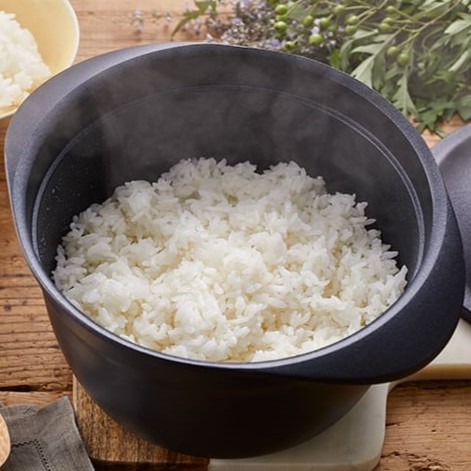 丸みのある形状で、お米がしっかり対流します。むらなく熱が伝わり、ふっくらおいしい炊き上がり。