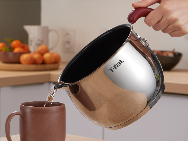 丸みのあるフォルムに注ぎ口つきで、ケトルのように注ぎやすい形状です。人間工学に基づいた握りやすい取っ手にも、ティファールのこだわりが詰まっています。