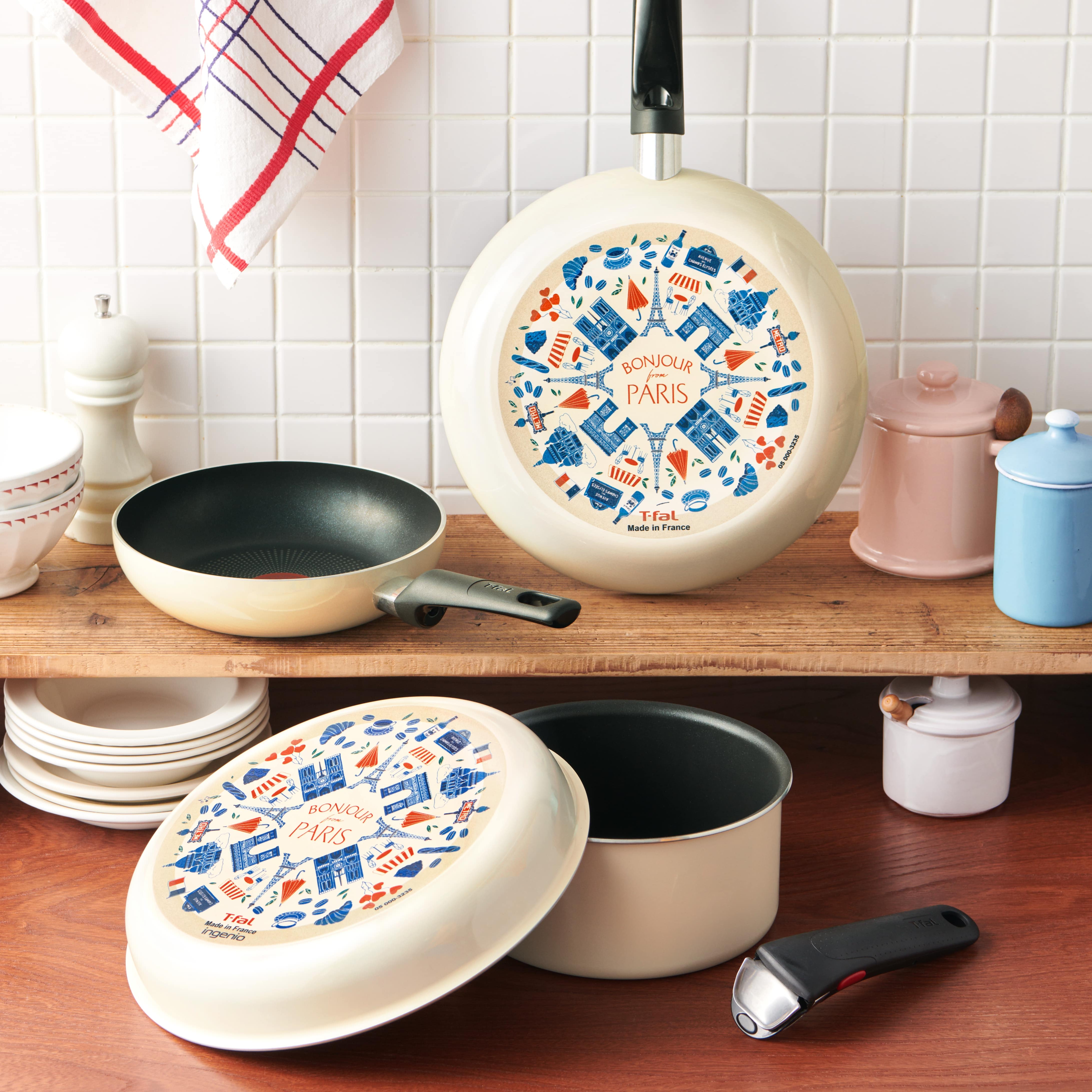 ティファールらしい「パリの街」をモチーフにしたデザインを裏面に施した特別なコレクション。キッチンインテリアのアクセントにもぴったり。