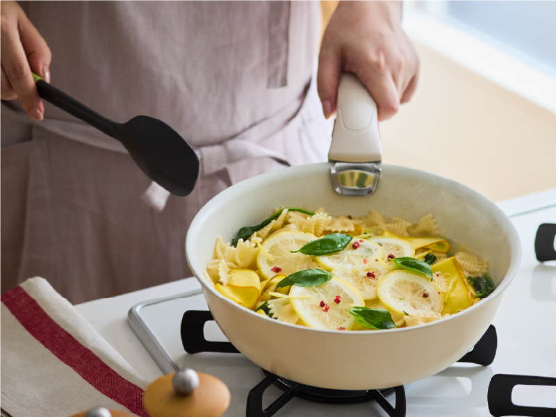 取っ手を外してそのままオーブンに入れられるから、料理の幅がグッと広がる。手の込んだメニューだって、ストレスフリー!
