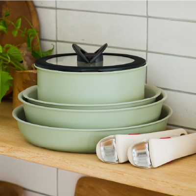 取っ手を握れば固定、両サイドのボタンを押すと解除。ティファールなら片手ワンタッチ脱着だから、調理中の付け外しも簡単。