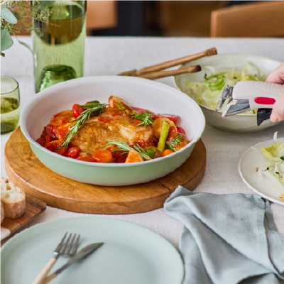 できたての料理の臨場感とおいしさを、そのままテーブルへ。洗い物が減るのも、忙しい日々にちょっと嬉しいポイント。