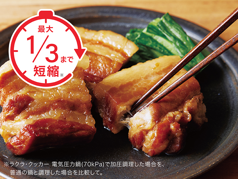 普通の鍋と比較して調理時間を最大1/3まで短縮。時間がないときの料理や、手間のかかる煮込み料理も短時間でおいしく仕上がる。