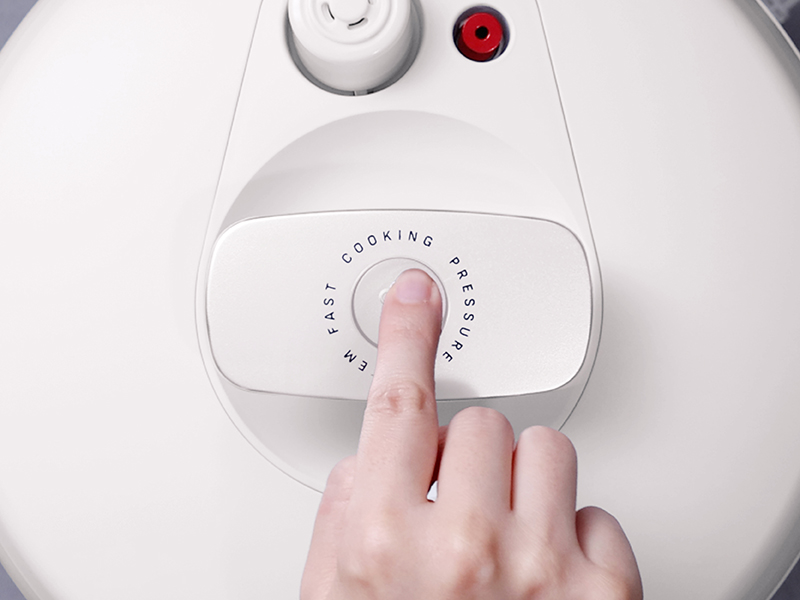 調理完了後、ワンプッシュで簡単操作の「圧力排出ボタン」。