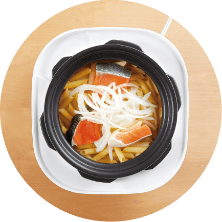 レシピ通りに食材を鍋に入れ、温度や時間を設定すれば、あとはラクラ・クッカーミニが自動で調理してくれるので、キッチンにずっといなくても大丈夫。調理している間、時間を有効に使うことができます。