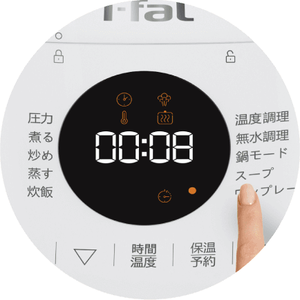 圧力調理、無水調理、温度調理、蒸す、煮る、炒める スープ、ワンプレート、鍋モード