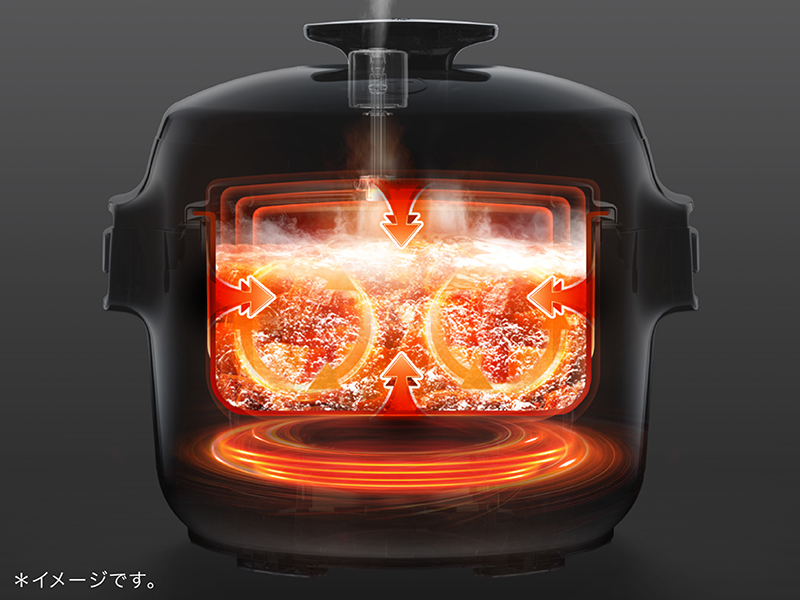 高温で調理する圧力調理がボタンひとつででき、普通の鍋と比べて時間を短縮。時間がない時や時間のかかる煮込み料理があっという間に完成します。