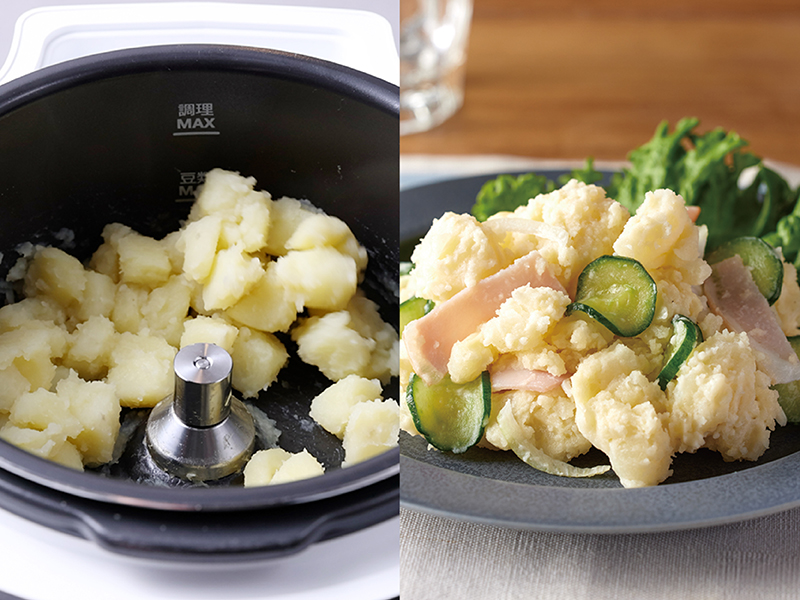 圧力調理、蒸す、無水調理、マッシュ(つぶす)、ごはん、カレー、肉じゃが