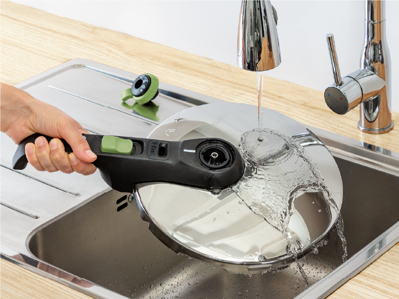 | 特長 | 圧力鍋と鍋が1つになった2in1タイプ。コーティング付きでこびりつきにくい | タイマー付き上位モデル。タイマーで失敗知らず、ガラスぶたも付いて便利に使える | スタンダードモデル。片手で簡単開閉できるから、普段使いに最適 | 最高級の品質と技術を活かしながら、プロのような料理の仕上がりを実現 | スライド開閉タイプの片手式圧力鍋。料理に合わせて選べる圧力モード |